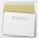 Simple basic 5x7 envelope with return address in a serif font. This 3-line layout is centered on the he back flap with capitalized first names and proper case for the address. Standard sizes and colors available.