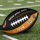 Modern Player Team Name Number Silhouette Football. A sleek football design! Featuring black and orange color scheme, bold lettering, realistic football graphics, this sporty design is perfect for any football fan. The design showcases dynamic player silhouettes, a football image and stripe details. Add your name, team name and player's number.