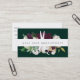 Modern elegant ivory white and dark plum purple flowers with lush green foliage adorned white salon scissors, logo style design, appointment cards. Text color and font style can be customized. Background color, shown in emerald green, can be changed. Professional design template with multiple lines for your information. Card features lines for appointment info., including name, day of the week check box, date and time.