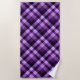 A beach towel featuring a beautiful diagonal plaid pattern design in plum purple.