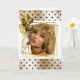 Celebrate your 21st birthday with this modern and chic design featuring small black polka dots on faux gold that line the top and bottom edge of the card and form a frame around a faux gold geometric photo inlay. The numbers twenty one appear in a faux gold and pretty heart shaped balloons float above it giving a stylish and elegant look to the overall design. The message inside may be changed to suit your personal requirements. Ideal for women.