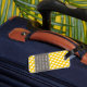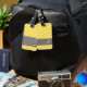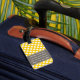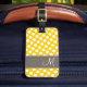 Travel in style with a girly design with yellow and white dots. Add your name or monogram on the front and your other information on the back.