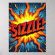 The "Sizzle!" Explosion poster is a celebration of raw energy and modern pop art. Unlike its retro counterparts, this piece focuses on pure, dynamic motion, capturing the explosive moment a sound becomes a force of nature. The word "SIZZLE!" isn't just a word; it's a burst of fiery energy, radiating outward in bold, abstract forms. This artwork is special because it merges the classic comic book onomatopoeia with a contemporary, high-impact aesthetic. The intense contrast between the hot, fiery colors and the cool, deep blue background creates a powerful visual tension. It's a statement piece designed to add a jolt of modern style and explosive energy to any room, perfect for those who want their art to be as vibrant and dynamic as their personality.