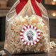 Modern graphic favor sticker with line art bag of popcorn, Hope you have a poppin' Valentine's Day in black modern font.