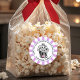 Modern graphic favor sticker with line art bag of popcorn, Hope you have a poppin' Valentine's Day in black modern font.