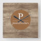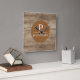 Modern graphic design wall clock features wood board background graphic with "Possibilities" word art circle.