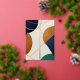 Abstract Geometric Art Modern poster minimalist with overlapping triangles and circles in jewel tones (emerald, sapphire, amber). Metallic gold accents and ‘Find Your Balance’ in tiny font.
