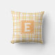 Modern Preppy Plaid Varsity Monogram Orange Yellow Throw Pillow