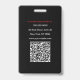 The front includes your logo, photo, name, title, ID number, and barcode, while the back features contact information, return details, and a scannable QR code for quick access to your website or portfolio.
