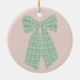 Modern Pretty Blush Gingham Romantic Coquette Bow Ceramic Ornament