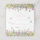 Bohemian, pretty and summery, this wedding folded place card features a brightly colored field of delicate wildflowers with butterflies, bumble bees and ladybugs.