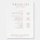 Modern, price list foam board. Edit your product in a few minutes by adding your data. You can change the font/color/position by "further personalization".