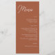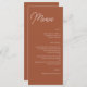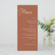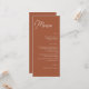 This terracotta burnt orange fall wedding reception menu is perfect for a bohemian style wedding. This trending color palette is perfect for a late summer or autumn wedding. Make this menu your own by including all of the wedding reception menu details. Have them printed or choose a digital download to print yourself.