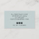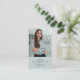 This business card features a photo layout with a framed title and name plate suitable for many professional titles like consultant, content developer, editor, sales consultant, etc. The reverse side features the contact info and business name. You can customize the text size, font, to fit your own personal style. Replace this sample place holder photo with your own portrait orientation business card. A dusty blue background on the front and back of the card.