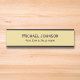Custom, personalized, professional, modern, classy, stylish, elegant, business office cabin classic black faux gold and black script / typography, wall or door hanging metal sign name plate. To customize, simply type in your full name and designation / title. While you personalize, you'll be able to see a preview throughout. Perfect for small business, office, consultants, entrepreneurs, business owners. Makes a great gift for employees, staff, managers, accountants, attorneys, real estate sales agents, lawyers, auditors, brokers, realtors, executives, corporate professionals.