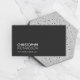 A professional and minimalist business card design for any industry. Your name or business name is offset for a modern aesthetic. Set on a dark gray background. This double-sided card design provides plenty of space on the backside for your contact info and details. © 1201AM Design Studio