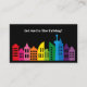 Bright, bold and modern design for all you professional drivers out there navigating the chaos for people everywhere. Classic black card with a colorful rainbow city skyline and your tagline on the front. Easily personalize with your info and QR Code on the back.