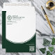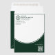 This modern business envelope template features a clean white layout with dark evergreen green accents and smooth curved detailing, creating a polished and professional look ideal for financial services, consulting firms, accounting offices, and corporate correspondence.