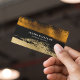 Trendy modern business card featuring a black background with faux gold brush strokes and a simple business card template that can easily be personalized. A luxury desgin business card, which would be great for interior designers, painter and decorators, barbers and many other businesses.