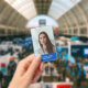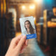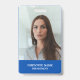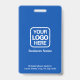Modern, simple and professional business employee badge on blue background with white typography to match your custom logo features the employee's photo and professional title or department on the front and Business Logo and additional information in the back.