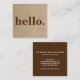 Modern Professional Minimalist Rustic Kraft Hello Square Business Card