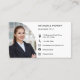 Modern Professional Photo QR Code Social Media white business card with minimalist contemporary style, photo template on the front, and the company logo on the back, with QR code for website and social media connection.