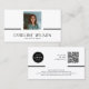 Simple elegant typography custom photo add your logo and scanning QR CODE to website or portfolio basic white and black business card for corporate managers, consultants, real estate agents, accountants, attorneys, legal advisors, financial, insurance, or tax specialists.