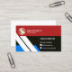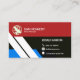 This business card has a display of strong bold colors. At the top of the card sits a dark red rectangle, the focal point of the card, here sits your name and position. An area of authority. Beside your name is the business logo. Two white diagonal columns slant below, to bring contrast to the dark colors. In the black column is the Business name and contact details. All the alphabets are done in white, to showcase the sharp contrast. The blue rectangular at the bottom left corner holds up the slanting rectangles for color support. This is a bold card design for bold people. Sharp, elegant and concise in features. An eye catching piece of work, design is suitable for those in sales and marketing.