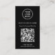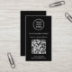 Modern and professional black business card for your company with your QR code for customers to scan for a list of your products, services, prices or other information. Upload your logo and QR code and add your business name, website, slogan, phone number, street address, etc. in simple white typography.