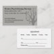 Modern Psychotherapist business card design with tree symbol in the background and trendy design with an appointment template on the reverse side for convenience. Designed for a Psychotherapy clinic or mental health facility, office, or group practice.