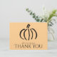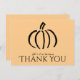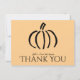 These autumn themed thank you notes (flat, non-folding) are perfect for fall events, whether Halloween, Thanksgiving, or weddings. Featuring a modern minimalist drawing of a pumpkin against a warm but subtle orange background (hex color ffcd8c). To add or delete lines of text, use the customize feature. Personalize with your name.