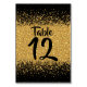 this modern wedding table number card has a sprinkled gold confetti effect on a black background. A striking design for any kind of wedding. Also available are matching wedding place card, menu and invitation. The font's style, color and placement can also be changed any way you like.