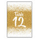 An elegant wedding table card number with a sprinkled gold confetti effect on a white background. A striking design for your special day. Also available are matching wedding place cards menu and invitation. The font's style, color and placement can also be changed any way you like.