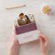 Elegant all-in-one wedding invitation featuring your engagement photo at the top and gold foil lettering for your names and wedding details. The modern layout showcases a sophisticated purple background paired with stylish calligraphy and serif fonts. A perforated RSVP postcard is included at the bottom for guests to easily respond. Perfect for couples seeking a romantic and refined design that works beautifully year-round. Part of our Modern Elegance wedding collection.
