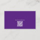 Network with these stylish purple and white business cards featuring your information on the front and a QR Code to scan to any URL address on the back. Personalize to be uniquely yours.