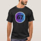 This modern graphic t-shirt features a vibrant purple and blue nebula backdrop inside a crisp circular frame, with a bold "67" emblem at the center. A clean, cosmic-inspired design for those who appreciate minimalist streetwear and high-contrast visuals.