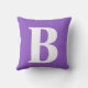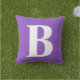Customizable bright purple background on both sides of the pillow. Large white monogram letter is on the center.