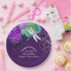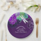 Elegant paper plates in plum purple to violet tones and touch of aqua with dragonfly accent. Modern, romantic floral theme. Customize text with your wedding information.