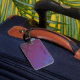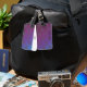 A modern purple floral design accents this luggage tag. Customize as desired.