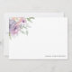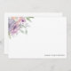 Pretty personalized note cards with watercolor flowers in purple and lilac, with green leaves. Personalize with your name. Makes a great gift.