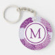 Modern Purple Flower Pattern Monogram Keychain