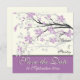 Beautiful magnolia branch with purple flowers adorn this wedding custom Save the Date announcement.