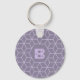 Modern Purple Geometric Cubes Pattern Monogram Keychain