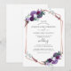 Modern Purple Geometric Rose Gold Floral Wedding Invitation