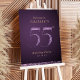 Modern minimalist 55th birthday party welcome sign features stylish faux purple glitter number 55 and your party details in gold classic serif font on deep purple background, simple and elegant.