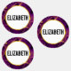 Personalized waterproof labels with a beautiful abstract pattern featuring a marble design. Rich purple colors blending together combined with faux-gold swirling ribbons of color mixing and mingling throughout the design. A circle with a faux gold-foil border layered over top with your personalized text inside.