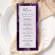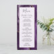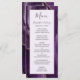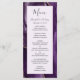 This elegant, modern wedding menu features a watercolor purple agate background trimmed with gold faux glitter. The text appears in elegant charcoal gray handwriting and copperplate fonts on a gold-framed lavender rectangle. The agate design is repeated on the reverse.