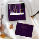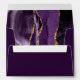 The inside of this elegant modern wedding invitation envelope features a purple watercolor agate design trimmed with faux gold glitter. Customize the back flap with the names of the bride and groom in gold colored handwriting script and return address in copperplate font on a dark plum background.