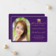 Modern Purple Gold Cap Script Photo Graduation Announcement