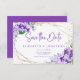Modern Purple Gold Green Floral Wreath Wedding Save The Date